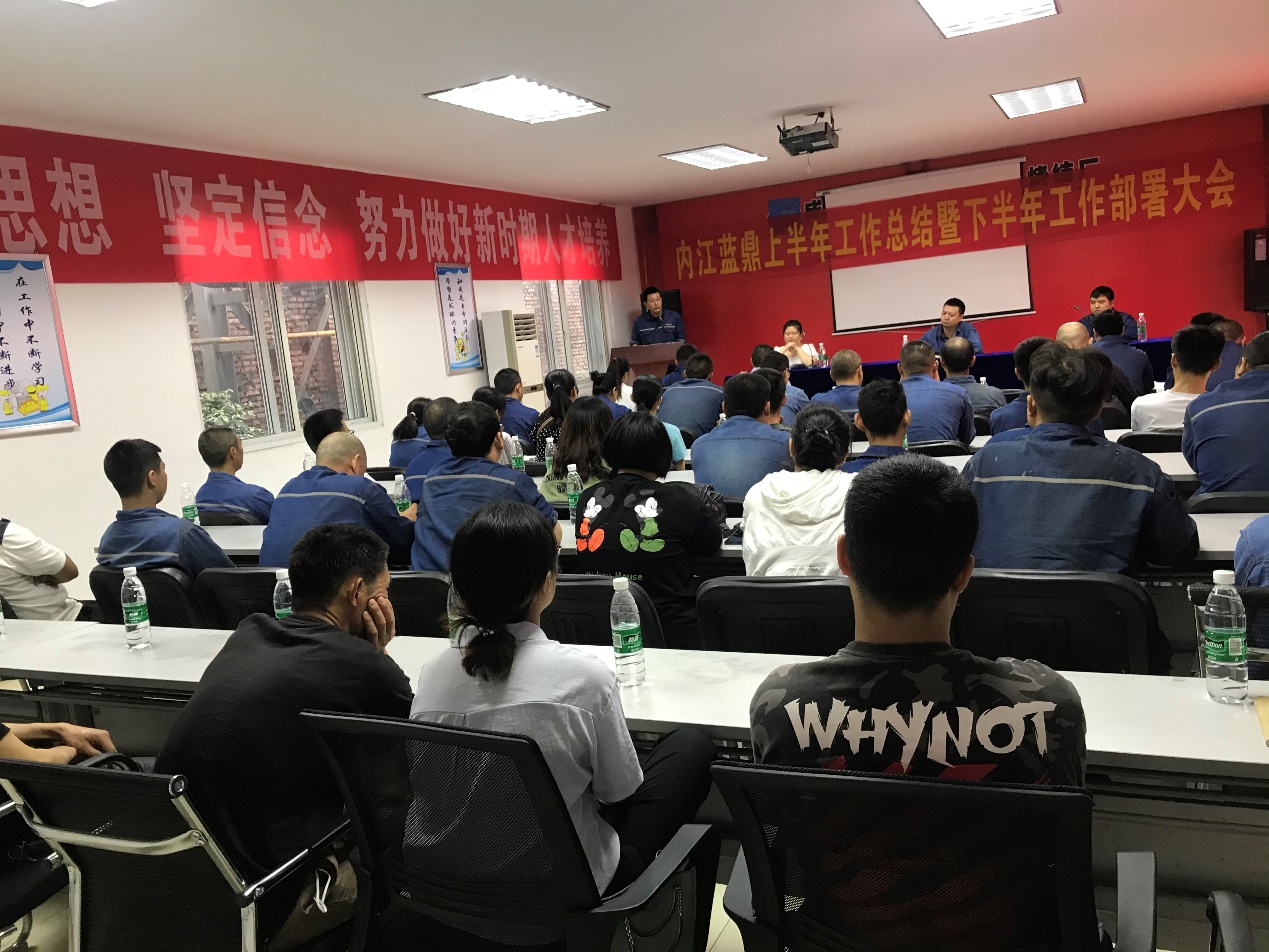 最后,生產(chǎn)部副部長(zhǎng)曾中東全面總結(jié)回顧了內(nèi)江藍(lán)鼎上半年的各項(xiàng)工作,客觀分析了內(nèi)江藍(lán)鼎現(xiàn)階段的形勢(shì),并對(duì)下半年的主要工作作了部署。他強(qiáng)調(diào),安全、綠化美化、人才培養(yǎng)、經(jīng)濟(jì)效益是內(nèi)江藍(lán)鼎的四個(gè)發(fā)展方向,內(nèi)江藍(lán)鼎三年合同四個(gè)階段性工作,要成為有組織、有紀(jì)律的團(tuán)隊(duì)。各級(jí)管理人員,要勇于擔(dān)當(dāng)、勤于思考,自覺(jué)主動(dòng)做好工作;要加強(qiáng)工作的時(shí)效性。并明確內(nèi)江藍(lán)每季度將召開(kāi)一次全體大會(huì),所有員工都可以大膽提出問(wèn)題、想法及思路。